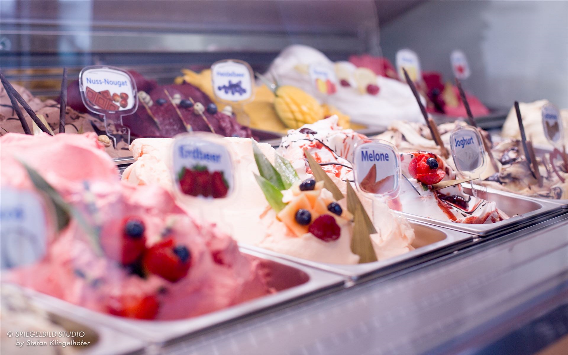 After-Eight, Buttermilch-Zitrone, Eisberg, Exotic Cocktail, Gourmet, Jogurt des Orients, Jogurt-Pfirsich-Mango, Jogurt-Maracuja, Jogurt-Waldbeer, Lemon Cheese Cake, Limoncello, Mandarine, Pino Pinguino, Quark-Holunder, Sahne-Himbeer-Gries, Waldmeister, Zartbitter… u.v.a.